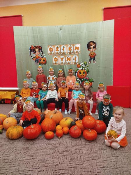 29 oraz 30 października w oddziałach przedszkolnych jak co roku nasi milusińscy obchodzili DZIEŃ DYNI . Ubrane na pomarańczowo przedszkolaki brały udział w licznych aktywnościach. Dzieci klasyfikowały dynie wg wielkości, koloru, kształtu, segregowały je od największej do najmniejszej, przeliczały oraz kodowały je na dywanie. Pod koniec zajęć w klasach odbyły się fotograficzne sesje dyniowe.