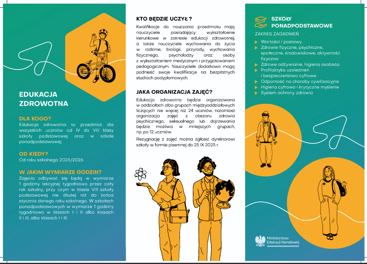 W załączniku znajdują się ulotki informacyjne o edukacji zdrowotnej w szkołach, prosimy o zapoznanie się z ich treścią.