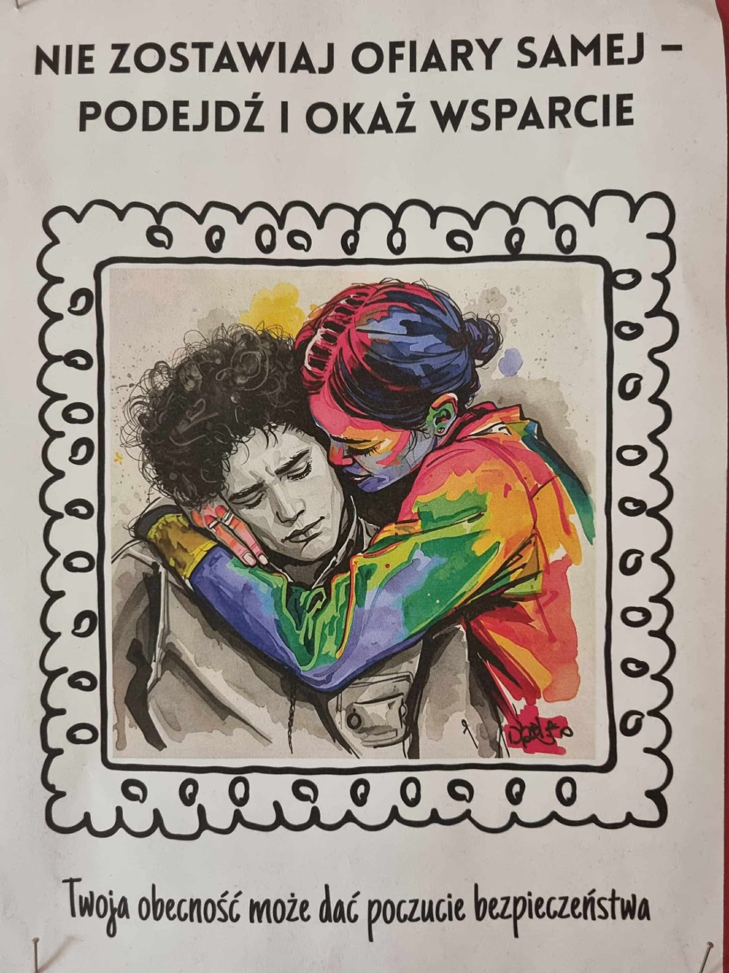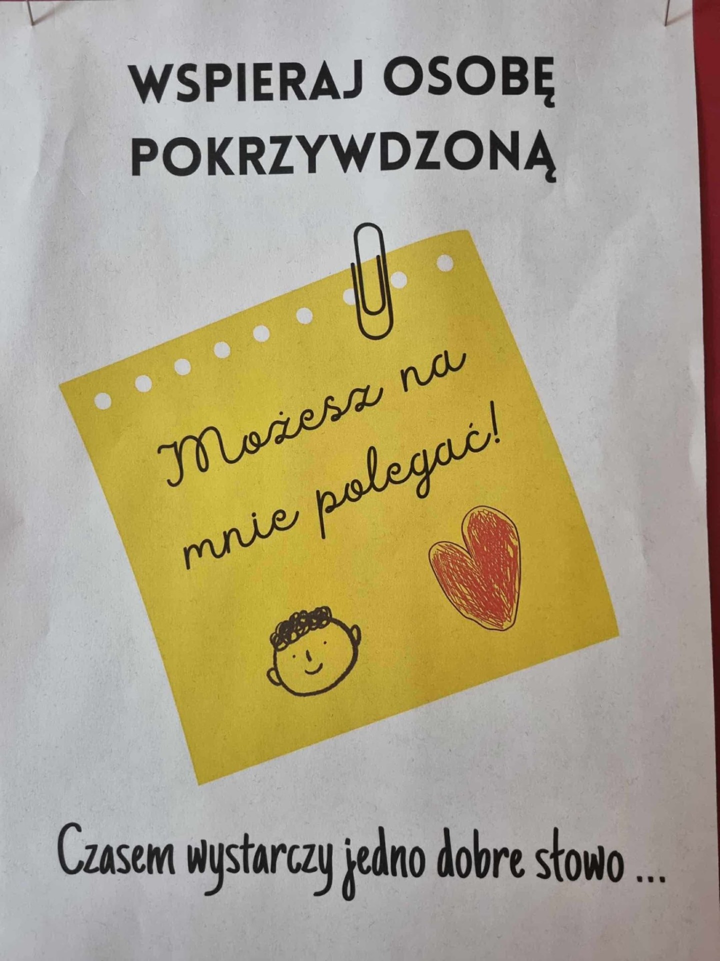 W ramach obchodów Tygodnia Bez Przemocy na szkolnych korytarzach pojawiły się gazetki poświęcone tematowi przeciwdziałania przemocy oraz reagowania w sytuacjach, gdy jesteśmy jej świadkami.