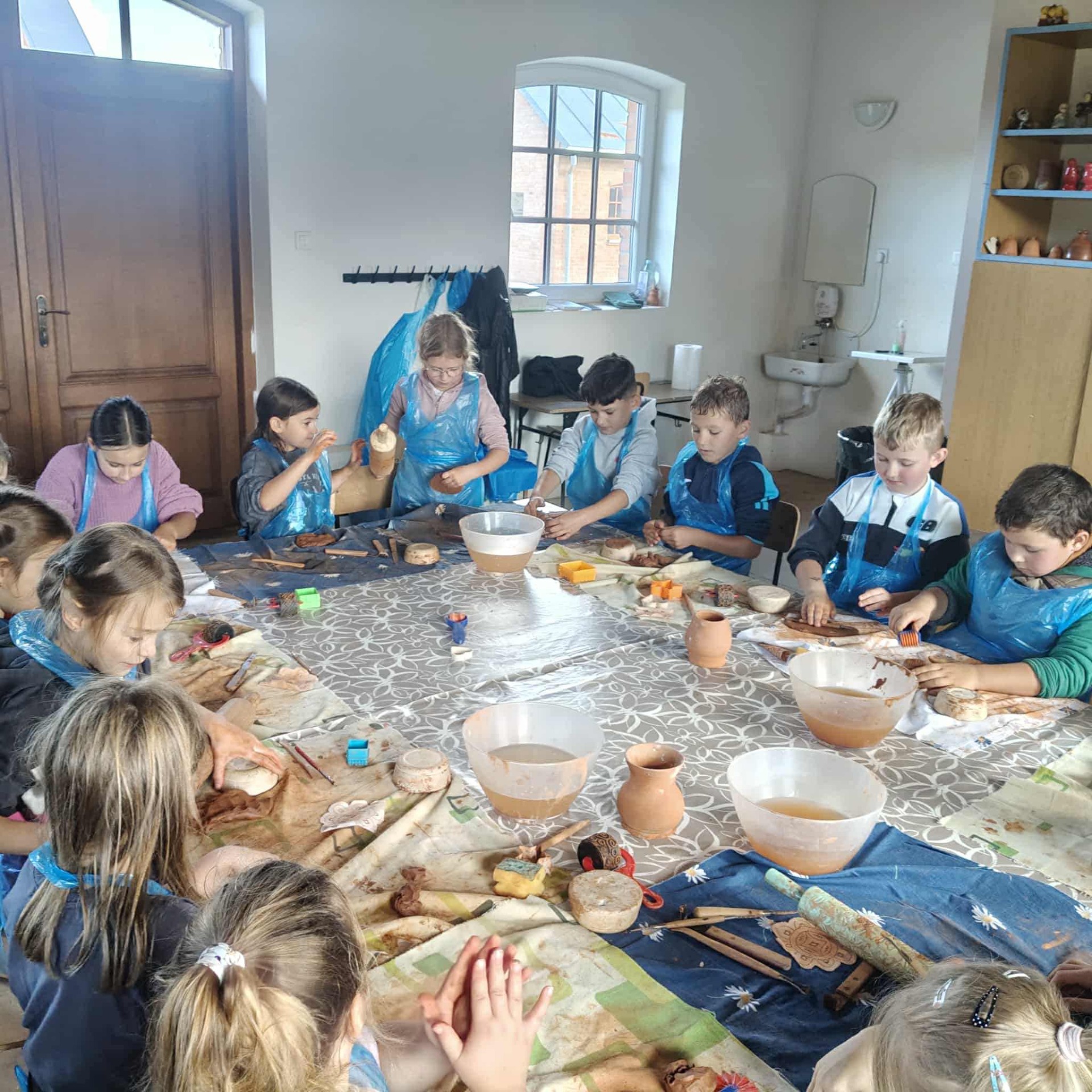 Podczas warsztatów garncarskich rozwijali swoje zdolności manualne i tworzyli piękne gliniane miseczki oraz ozdoby.