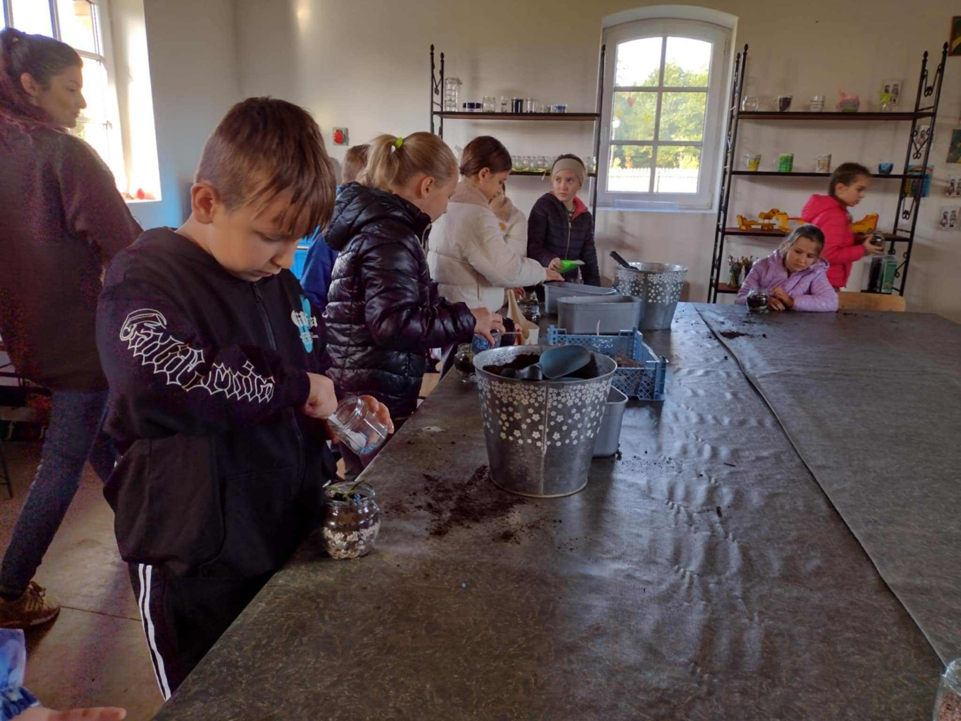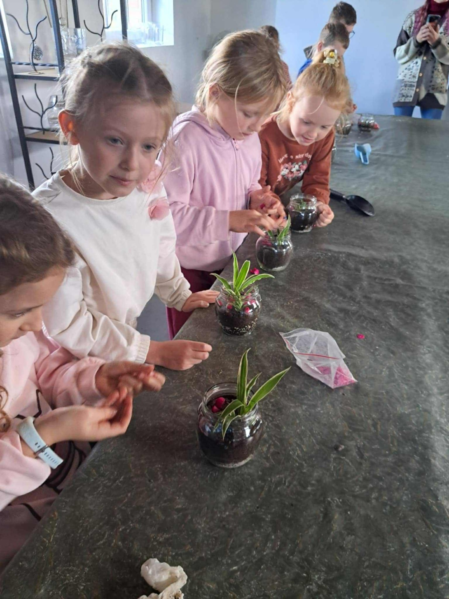 Kreatywność dzieci rozkwitła także przy komponowaniu roślinek w słoikach, które stały się wyjątkową pamiątką z wyjazdu.