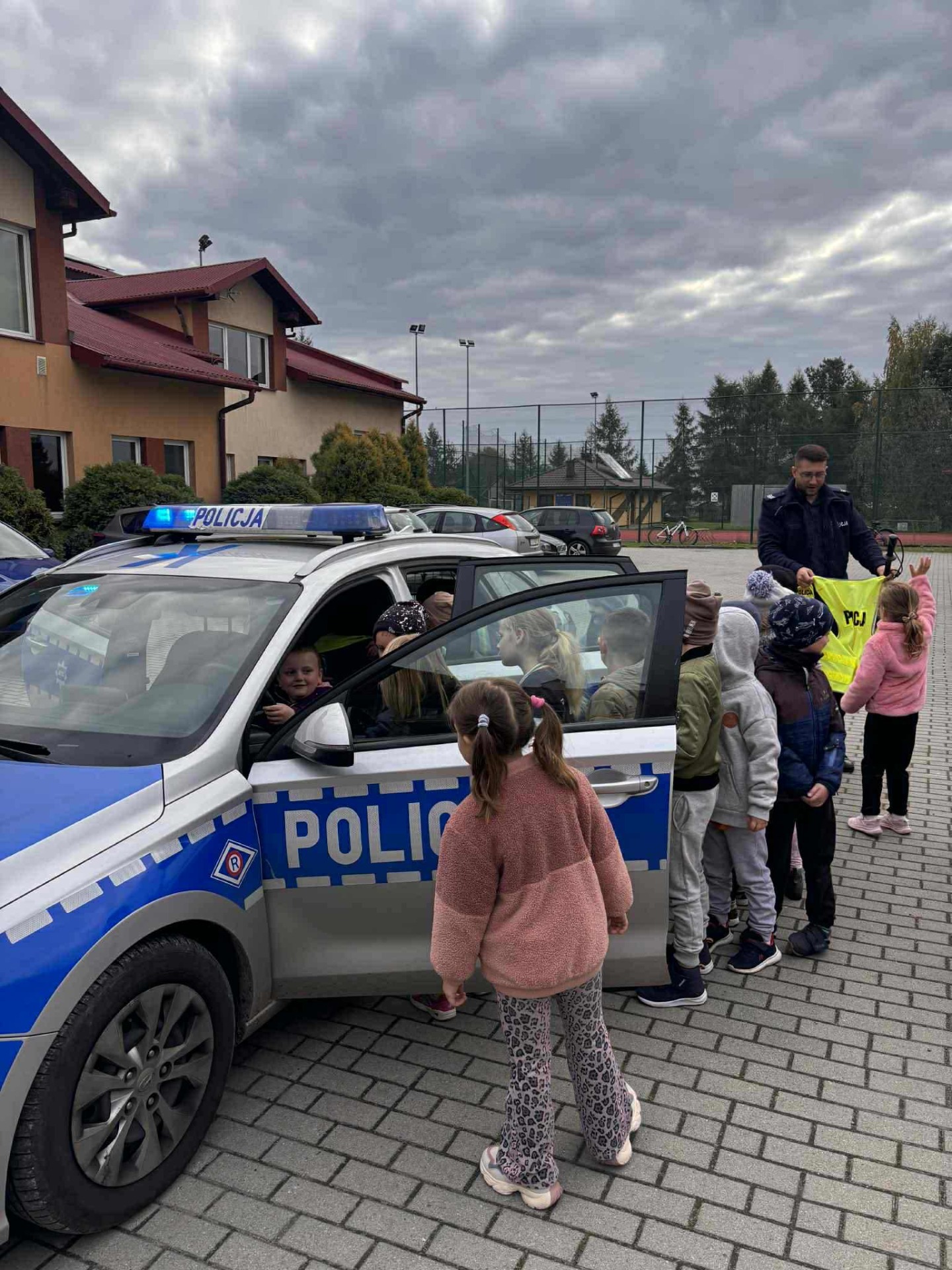 Na zakończenie spotkania dzieci rozwiązywały krzyżówkę utrwalającą poznane treści, a największą atrakcją okazała się możliwość obejrzenia radiowozu policyjnego z bliska!